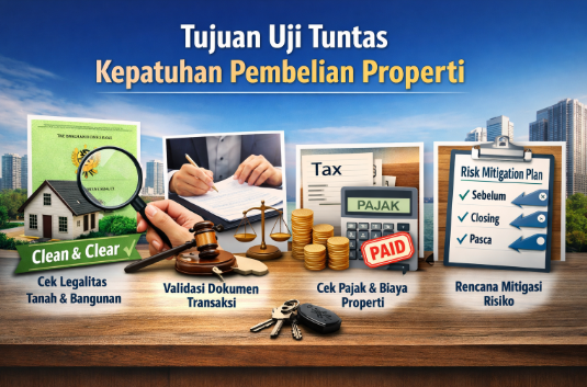 Uji tuntas kepatuhan pembelian properti merupakan proses pemeriksaan menyeluruh terhadap aspek pertanahan, bangunan, perizinan, perpajakan, serta struktur transaksi, dengan tujuan memastikan bahwa objek dan transaksi pembelian memenuhi ketentuan hukum yang berlaku serta aman secara hukum bagi pembeli. Proses ini tidak hanya berfungsi sebagai alat verifikasi, tetapi juga sebagai dasar pengambilan keputusan, penyusunan mitigasi risiko, dan perlindungan hukum jangka panjang.