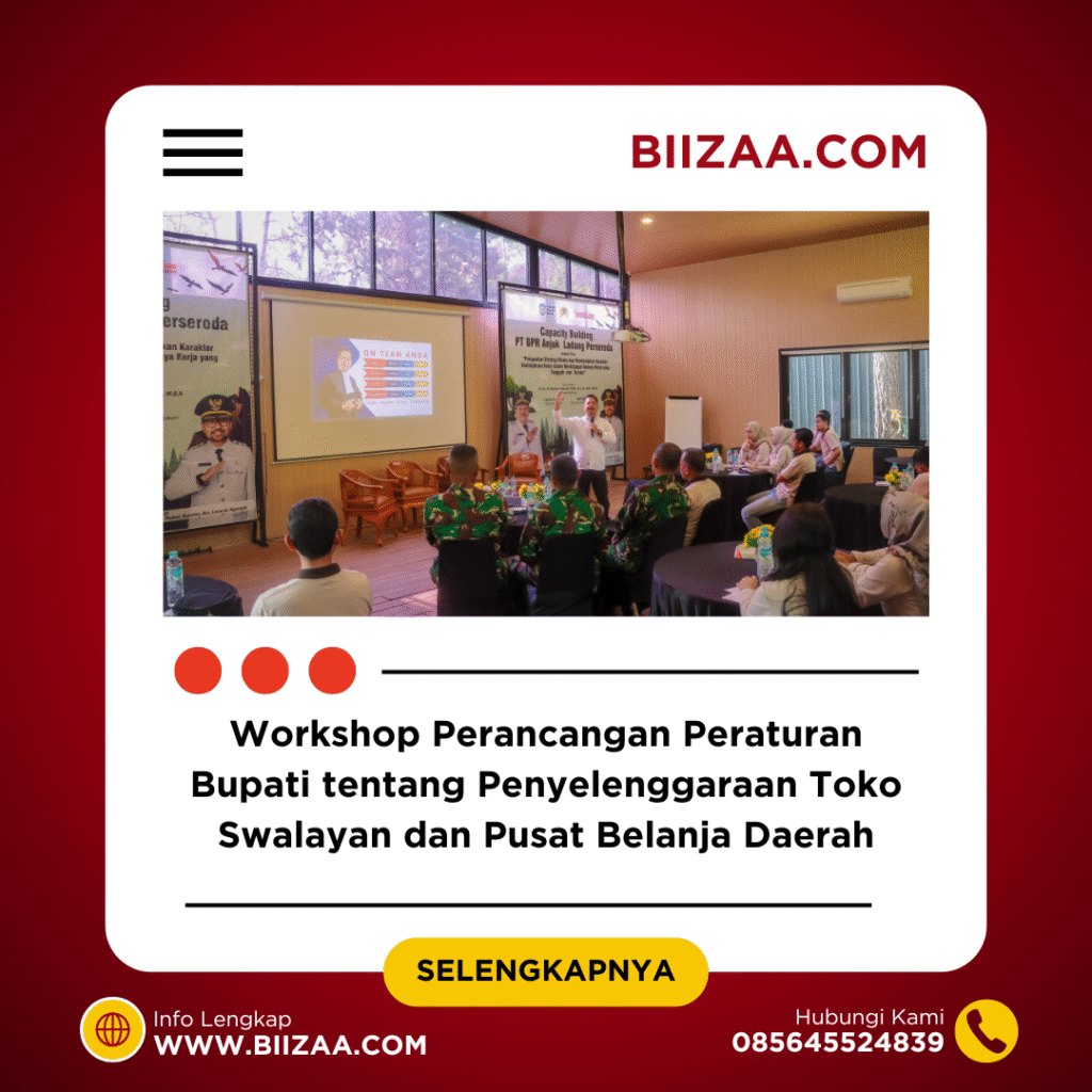 Products search Workshop Manajemen Risiko Hukum Koperasi Desa/Kelurahan Merah Putih Workshop Perancangan Peraturan Bupati tentang Penyelenggaraan Toko Swalayan dan Pusat Belanja Daerah Pelatihan Ketrampilan Membaca Hukum Workshop Pemanfaatan AI Chat GPT dalam Perencanaan Program Pemerintah